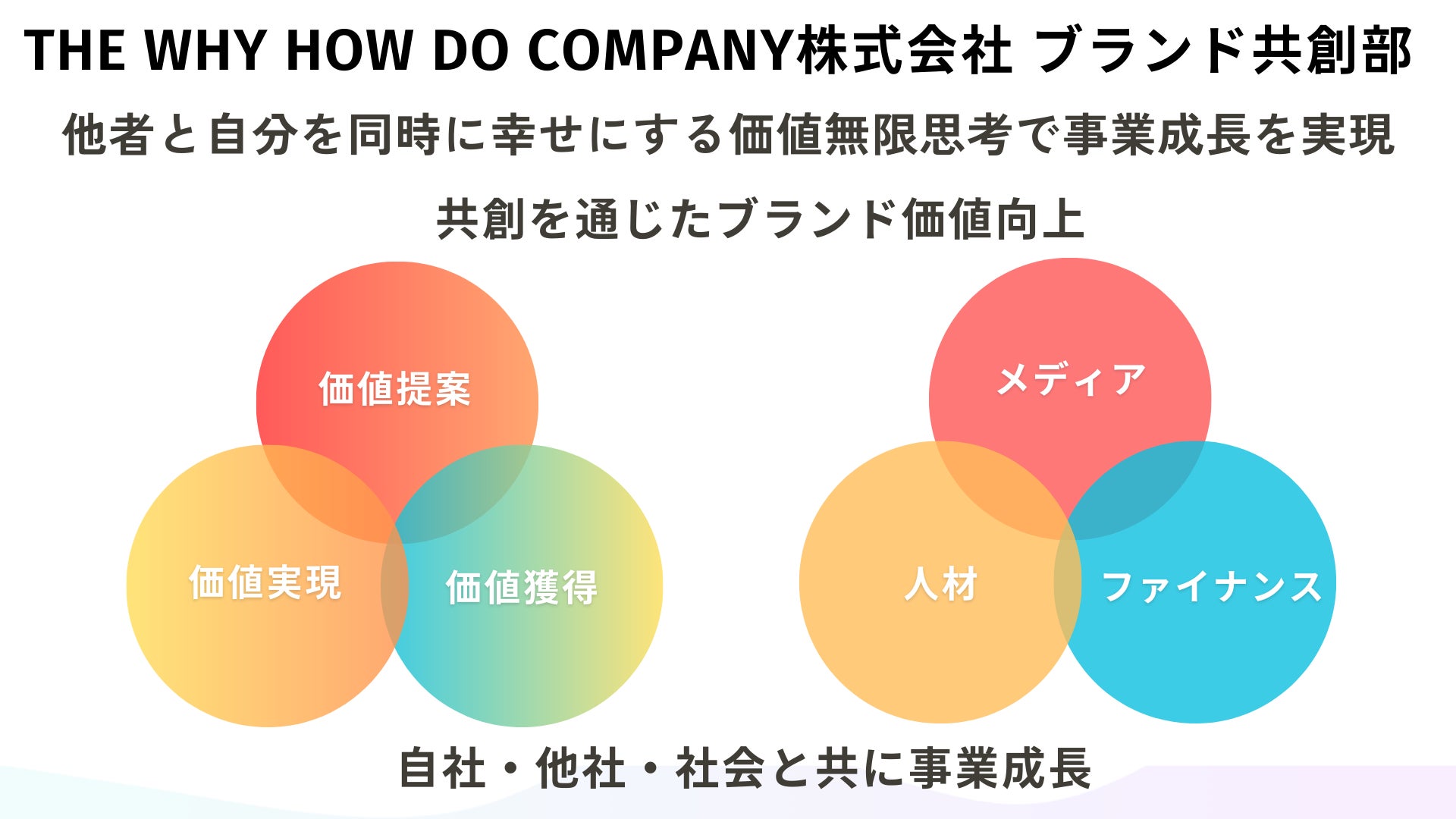 当社の理念「価値創造経営の力で、もう一度豊かになる」のもと、THE WHY HOW DO COMPANY株式会社(本社:東京都新宿区、代表取締役社長:岩尾俊兵、東証スタンダード:3823、以下「ワイハウ」)は、企業の新規事業創出および既存事業の再成長を支援すべく、「ブランド共創部」を設立いたしました。担当部長に浜崎正己が就任いたします。既存の「価値創造本部」と密接に連携することで、大手企業がかかえる下記のような課題を一気通貫でサポートします。