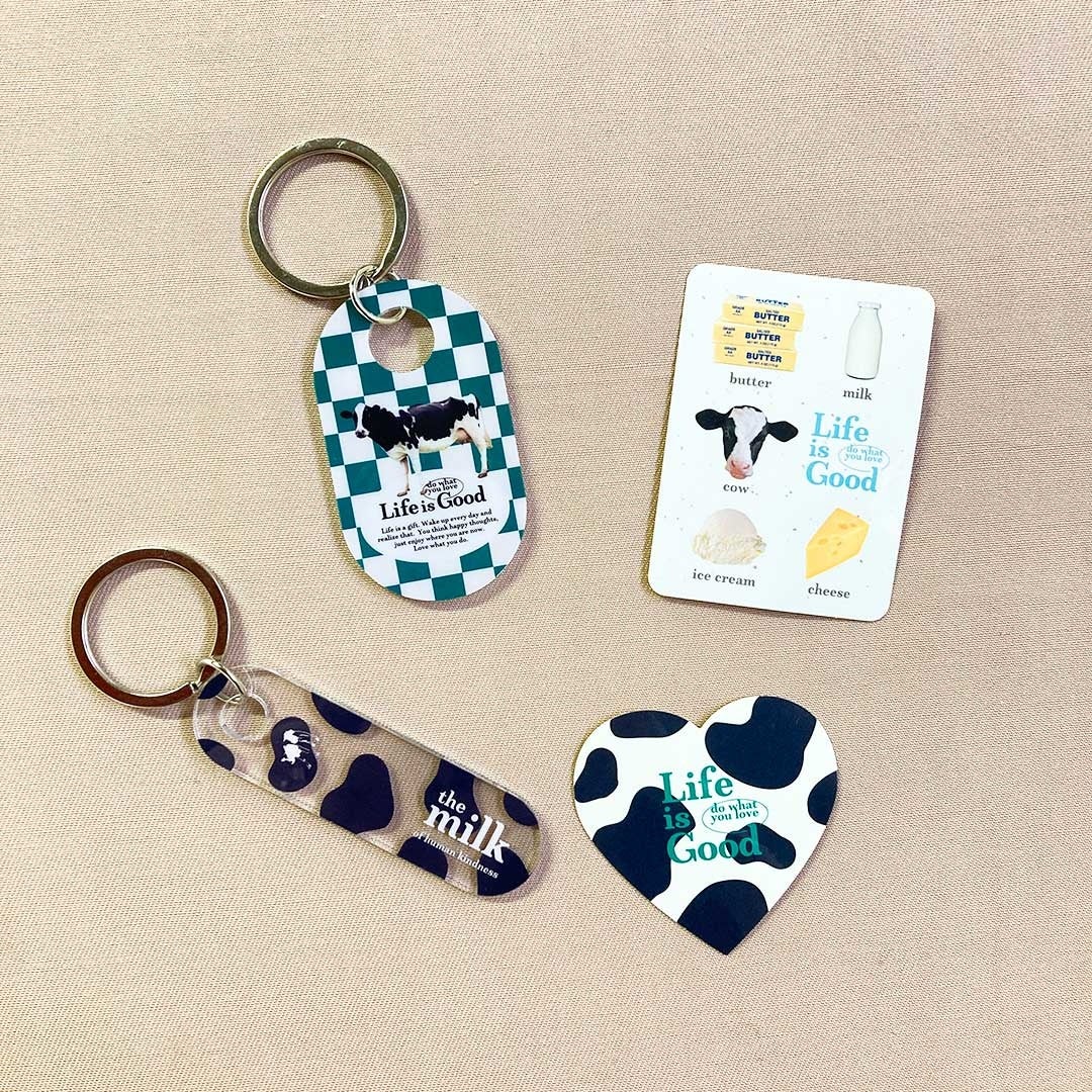 バターやミルク、チーズ、アイスクリームといった乳製品をモチーフにしたデザインのアイテム。