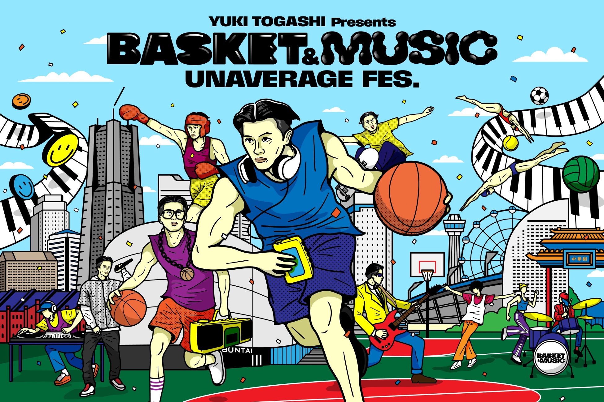 富樫選手が企画した「UNAVERAGE FES.」は、各競技のトップアスリートやアーティスト、インフルエンサーが一堂に会し、人・音楽・文化・スポーツなどの垣根を超えた、バスケットボールと音楽のフェスティバルです。