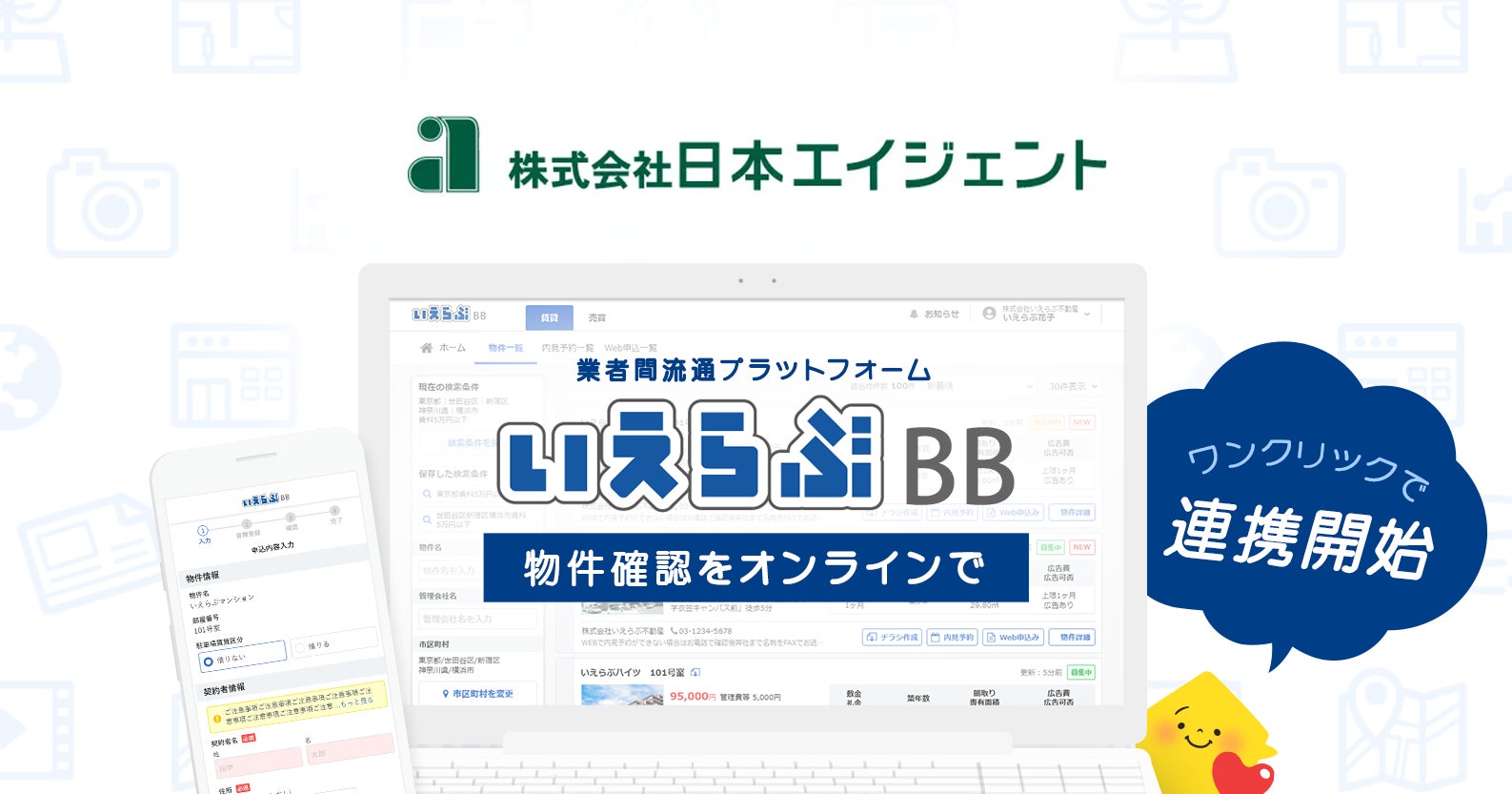 株式会社いえらぶGROUP(本社:東京都新宿区、代表:岩名泰介、以下「いえらぶGROUP」)は、株式会社日本エイジェント(本社:愛媛県松山市、代表:乃万春樹、以下「日本エイジェント」)に業者間流通プラットフォーム「いえらぶBB」の提供を開始しました。