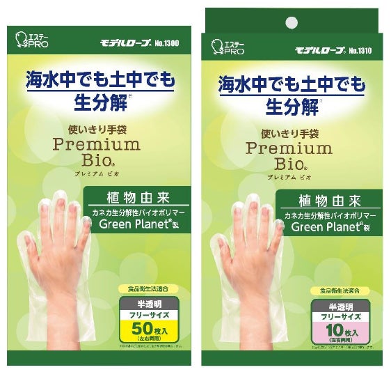 【エステー】地球にやさしい素材の業務用手袋「モデルローブ No.1300 プレミアムビオ(50枚入)」「モデルローブ No.1310 プレミアムビオ(10枚入)」を新発売