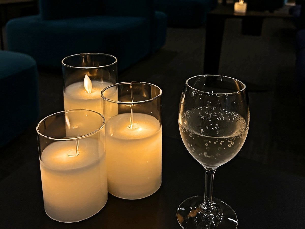 ご夕食後、キャンドルの優しい灯りの中でスパークリングワインとともに寛ぎのひとときをお過ごしください。