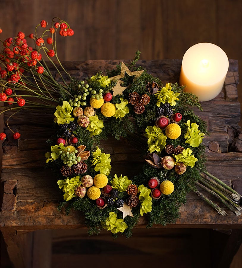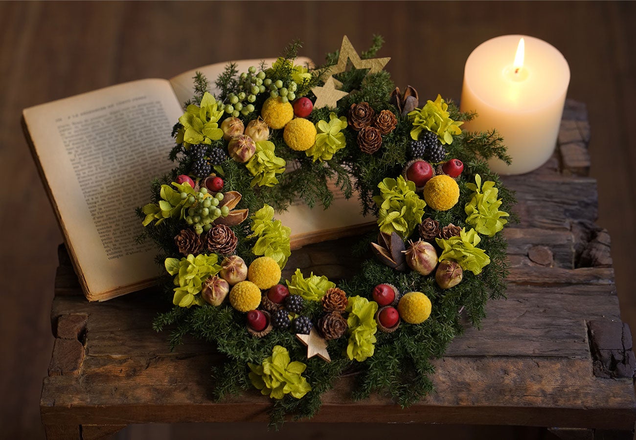 プリザーブドフラワーのリースは、お世話がいらず飾りやすく、枯れることもありません。クリスマスシーズンが終わってもお部屋のインテリアとしてなじむデザインなので一年中お楽しみいただけます。クリスマスの素敵な思い出を、暮らしの中で感じていただくことができます。