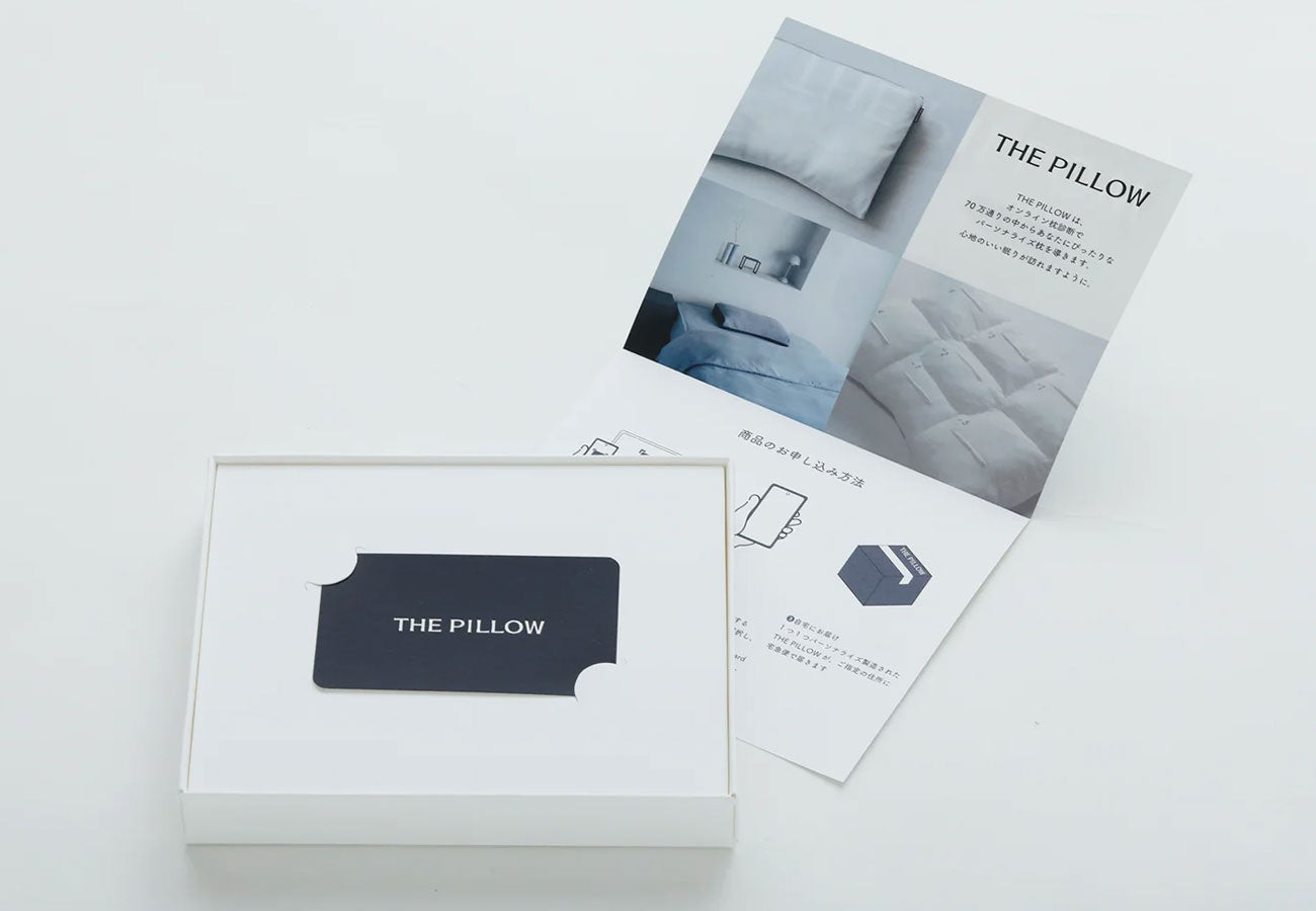 THE PILLOW Gift は、自分に合う枕「THE PILLOW Personalize」を大切な人に贈ることができるカードタイプの枕ギフトです。 ギフト・プレゼントを受け取った方がオンライン枕診断を行うことにより「大切な人に合う」枕を仕立て、後日 THE PILLOW Personalize をお届けするサービスです。