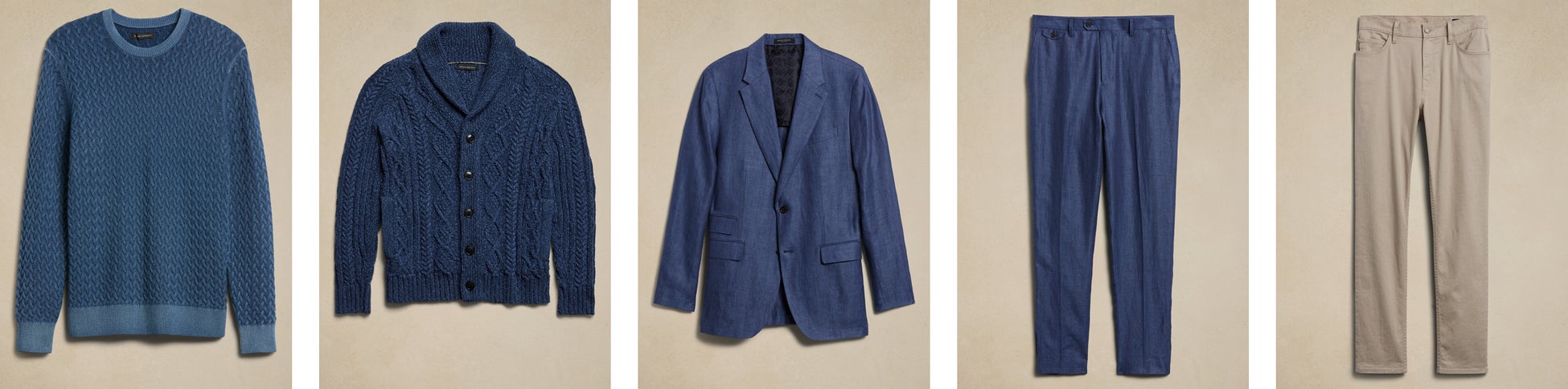 メンズは、涼し気なインディゴやデニムブルーなど、ブルートーンのグラデーションで魅せる、リラックスした着心地と高品質な素材にこだわったエレガントなスタイルを提案します。