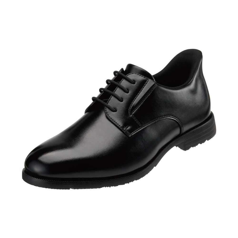 新発売されたセダークレストのビジネスシューズには、手を使わずに立ったままスパッと履ける「スパットシューズ」の機能を搭載しました。靴ベラを使わずに靴が履けますので、朝の出勤や取引先への訪問、会食の場などでもスマートに、そしてストレスフリーで靴の脱ぎ履きが可能です。軽量設計された本体にはストレッチ性に優れたポリウレタン素材のアッパーを採用、柔らかいインソールとともに、足にフィットして歩行をサポートします。アッパーには撥水加工が施され、雨の日でも安心!ライニング(靴内側)には、リサイクル素材を使用した環境にも優しい一足です。
