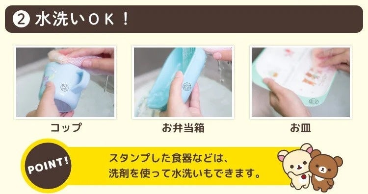 リラックマ、キイロイトリ、コリラックマ、チャイロイコグマ、サクラノコリスetc。かわいいリラックマとお友だちが自分のもちものを教えてくれる、布にもプラスチックにもポンポン押せるスタンプです。