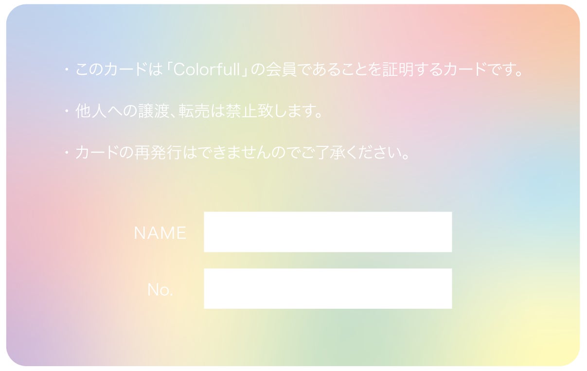 またグランドオープンを記念して、2024年6月22日12:00〜2024年7月21日23:59までに【年間プラン】でご入会いただいた方全員に「Colorfull会員証」をプレゼント!(※デザインは変更となる可能性がございます。)