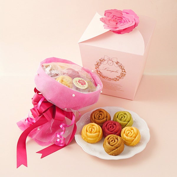 手にした瞬間心が華やかになる、バラのマドレーヌの花束。