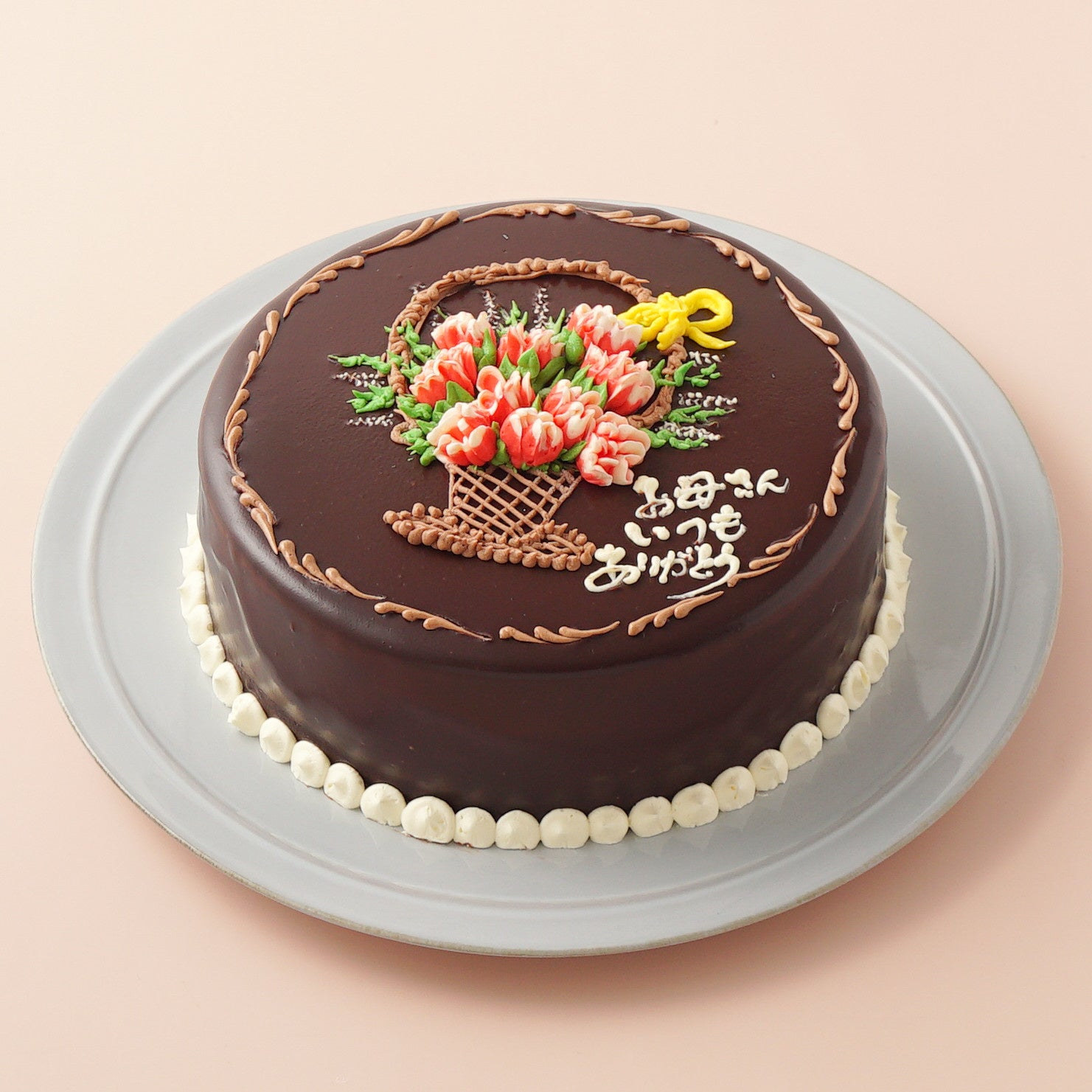 老若男女みんなが大好きなチョコレートクリームのケーキに、母の日限定でカーネーションをデコレーション。職人さんが1つ1つ丁寧に心を込めて手書きをした花束のデザインは、お母さんへ日頃の感謝の気持ちを伝えたいお祝いにぴったりです。Cake.jp限定商品です。