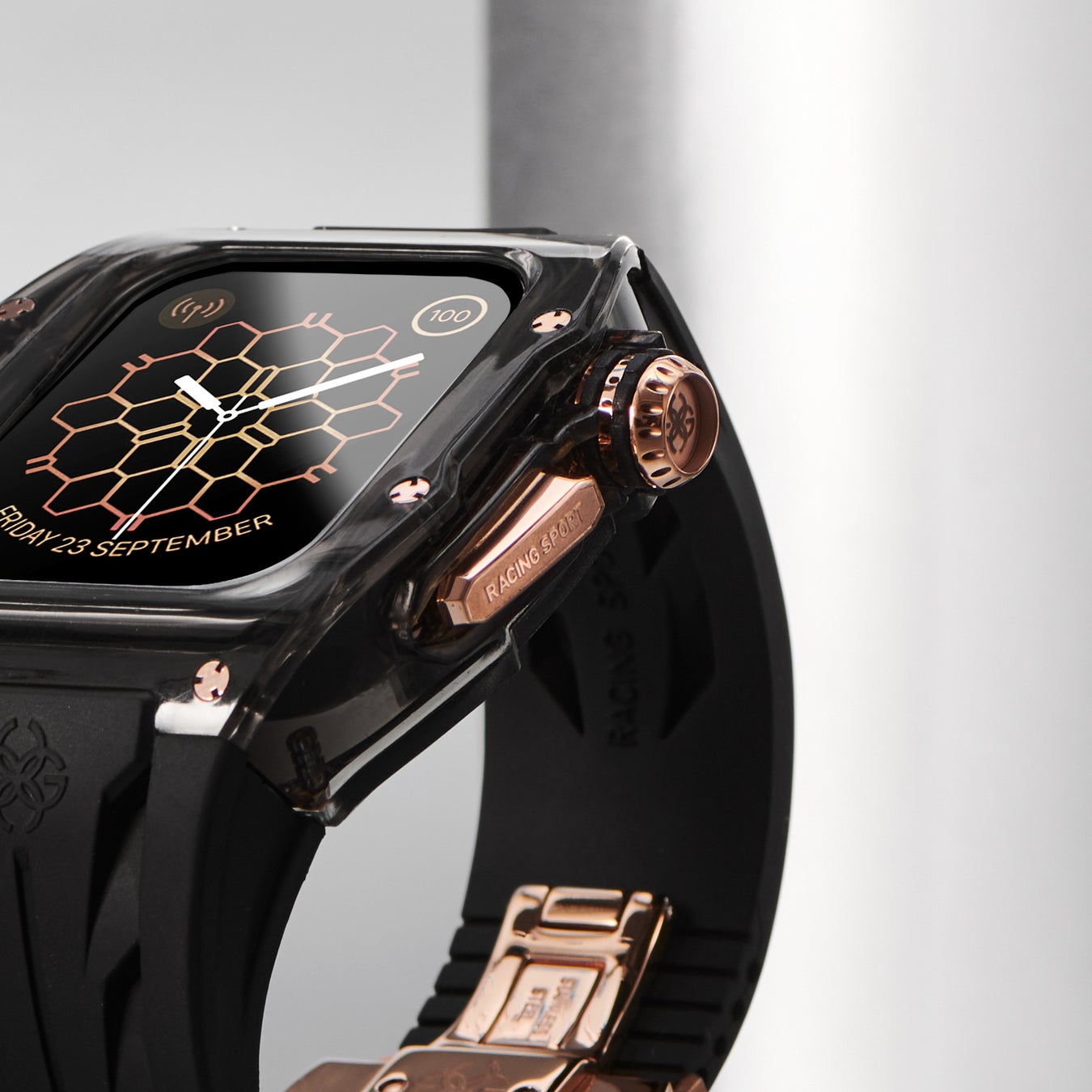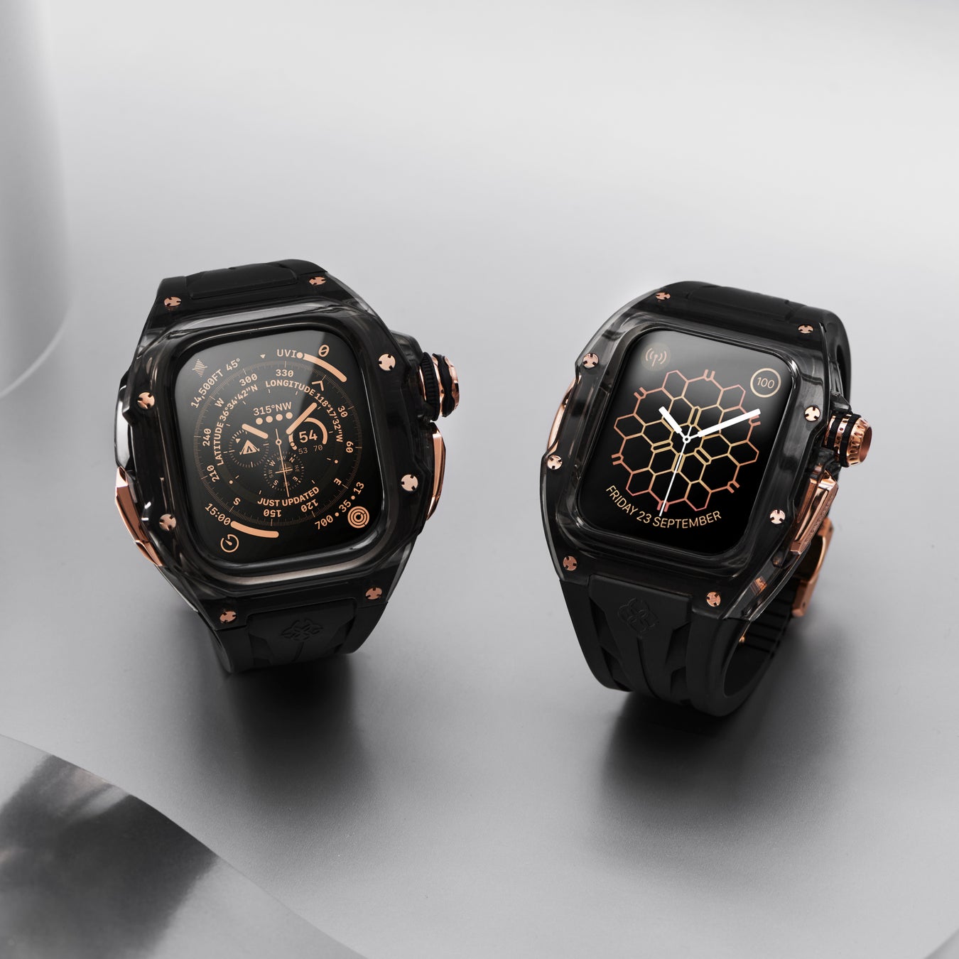 高級アップルウォッチケースとしての地位を確立した、スウェーデン発のラグジュアリーブランド「GOLDEN CONCEPT(ゴールデンコンセプト)」の人気コレクション「CRYSTAL EDITION」から、ブラック×ローズゴールドの最新モデル「RSTR SMOKEY BLACK」が発売。