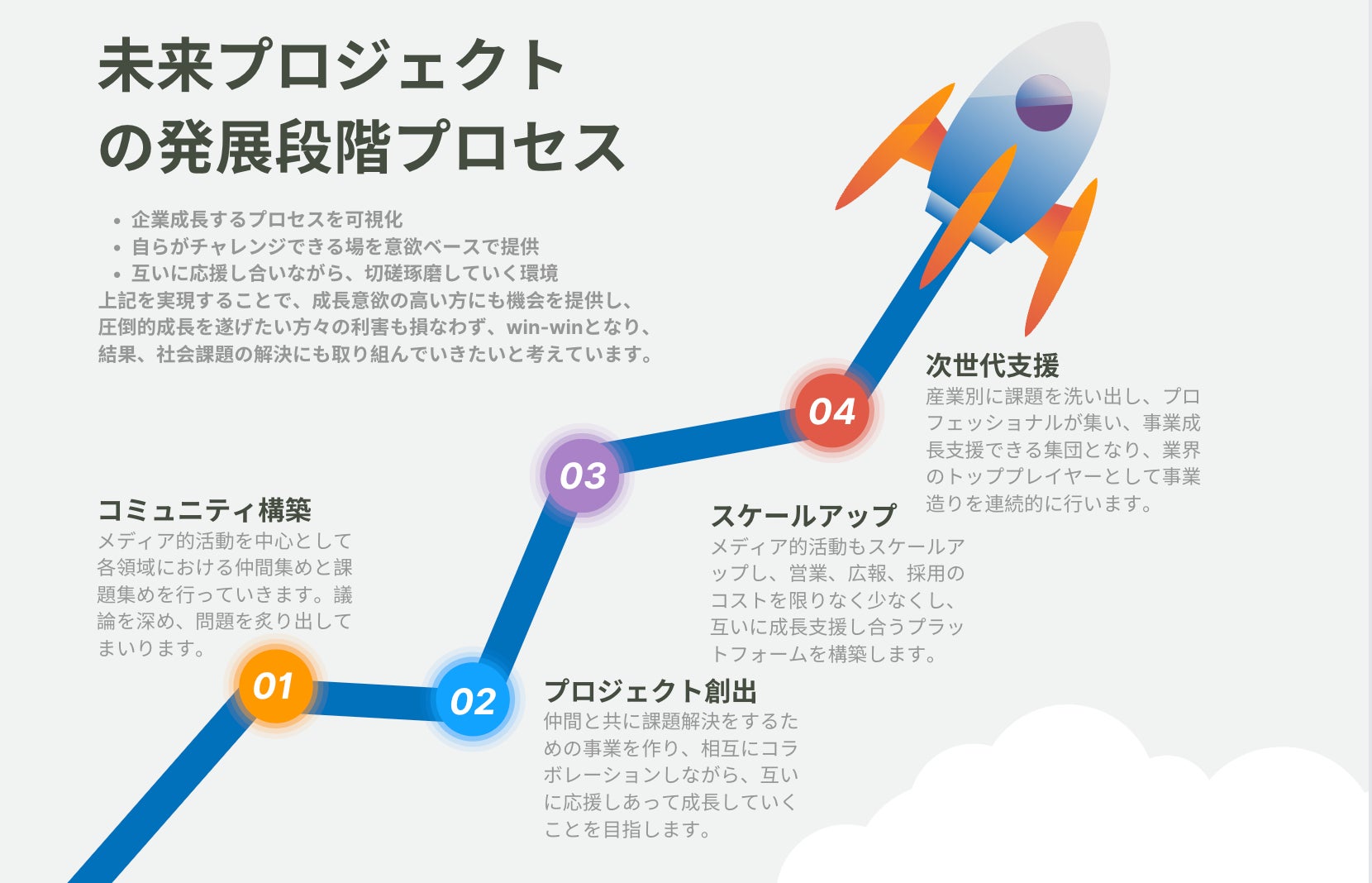 - 未来パートナー:個人で、共に事業を作ったり、プロジェクトを進めていく方々。