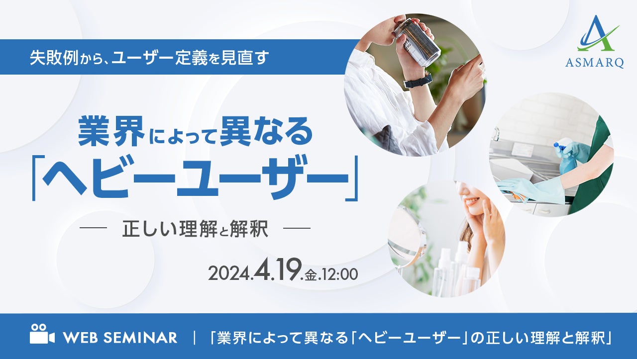 株式会社アスマーク(東京都渋谷区東、代表取締役:町田正一)は、2024年4月19日(金)12:00に、定量/定性調査の「サンプル・対象者設計」における「ヘビーユーザーの定義」について、セミナーにてご案内いたします。