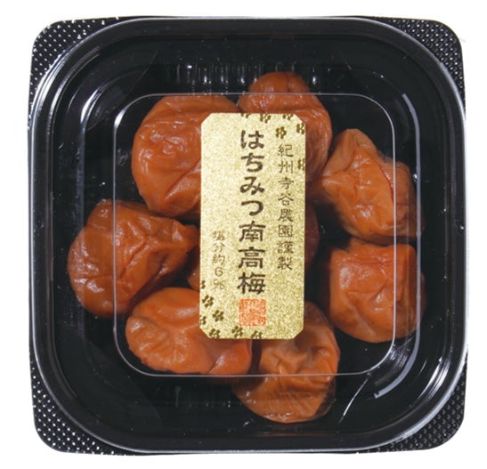 塩、粗糖、りんご酢、みりん、はちみつのみで仕上げたあっさりとした後味の、他に類のないはちみつ漬け梅干しです。※塩分約6%