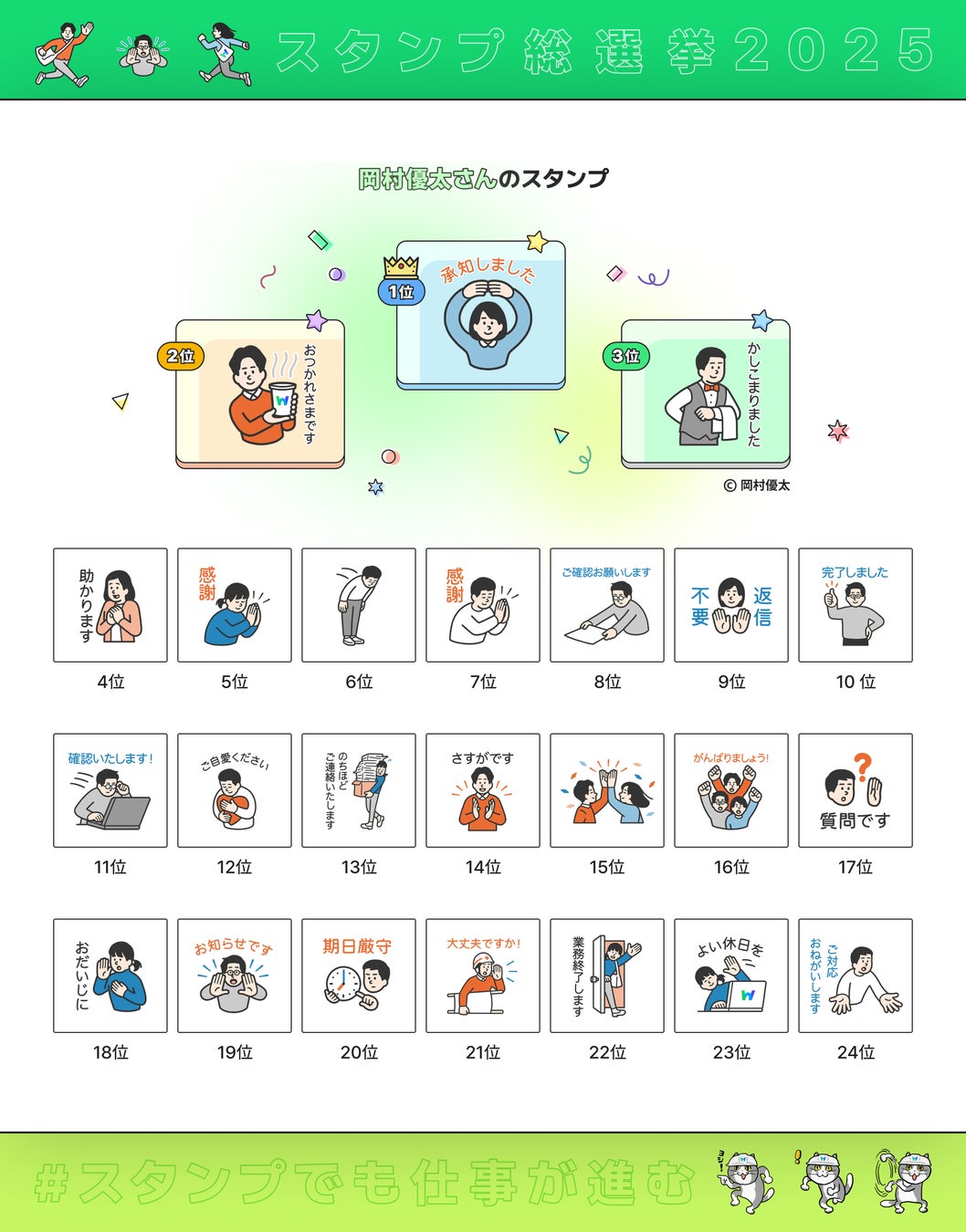 LINE WORKS「スタンプ総選挙2025」投票結果発表!! 企画開始から5周年。総投票数は過去最多の12,000票超。
