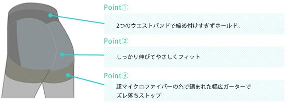 仕様:ダブルウエスト仕様、滑り止め機能付きガーター