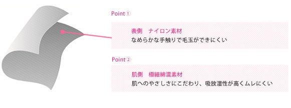 幅広フラットウエストバンド、静電気防止加工、保湿成分配合