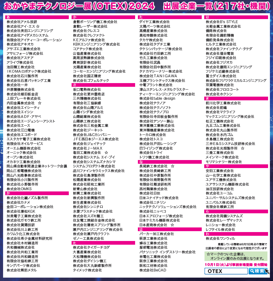 ※掲載している情報は8月5日時点の情報で、出展者の都合により変更になる可能性がございます。