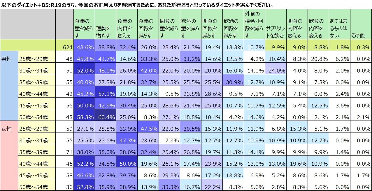 今年「正月太りした」男女ともに約5割。正月太り解消ダイエットの成功者は運動よりも食事・間食調整で。