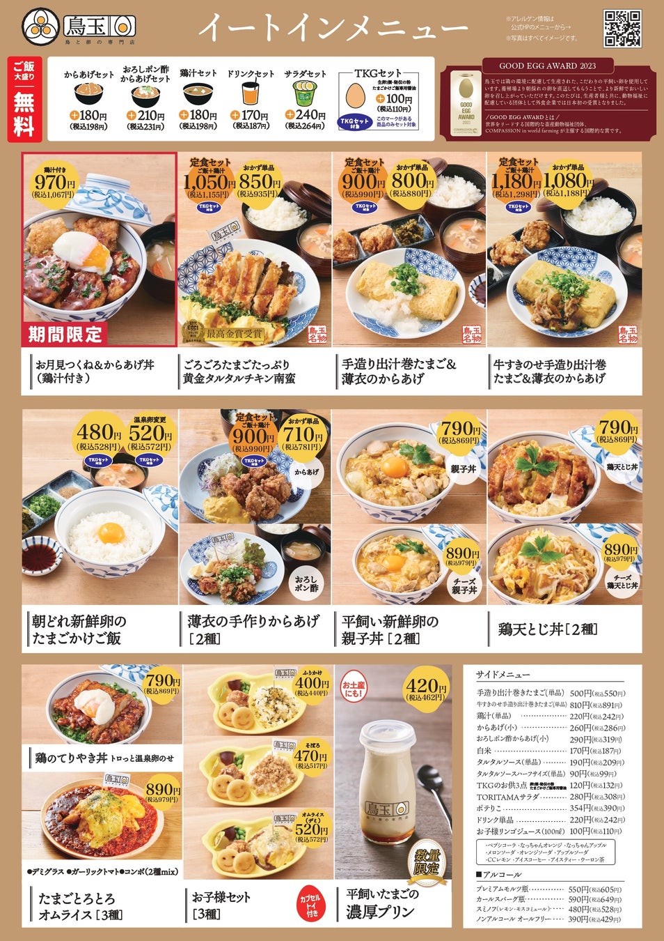 また、看板メニューである「ごろごろたまごたっぷり 黄金タルタルチキン南蛮」は、鳥玉発祥の地である沖縄にて実施された「EGG-1 グランプリ決定戦」第1回で見事「初代グランプリ」に輝いた自慢の逸品