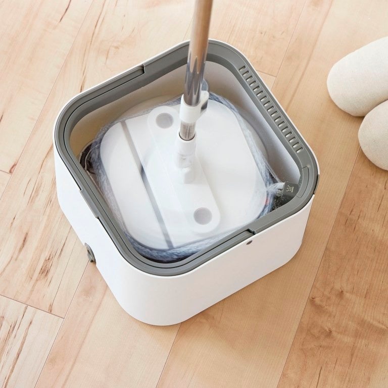 くるくる回すだけで、モップも床もすっきり。