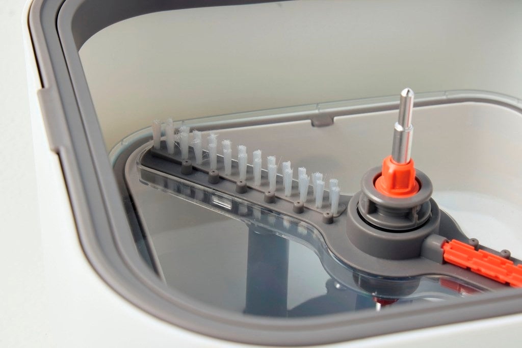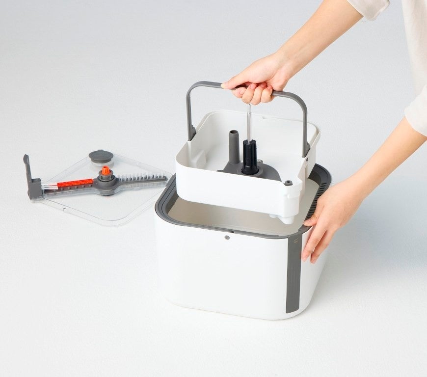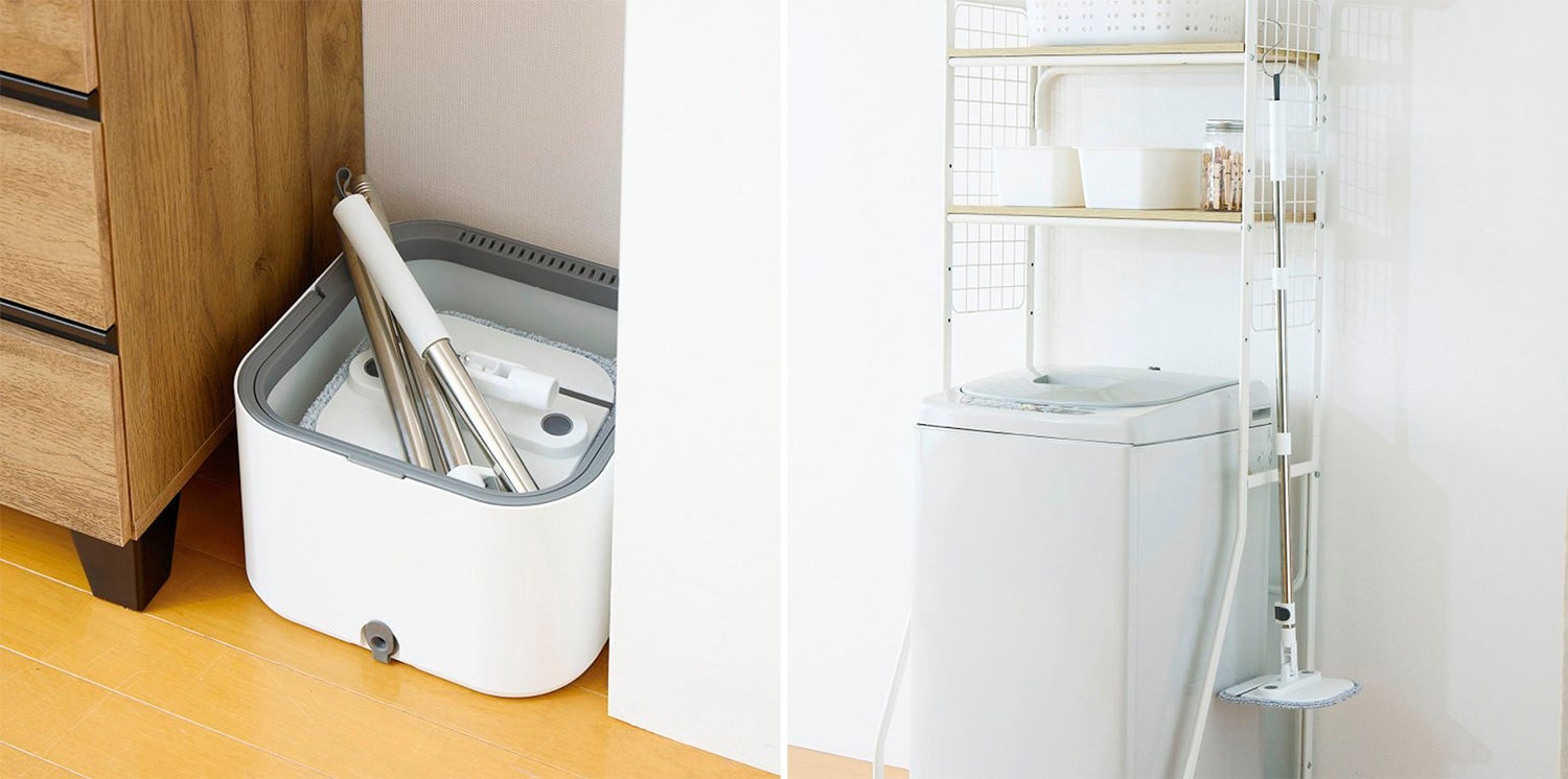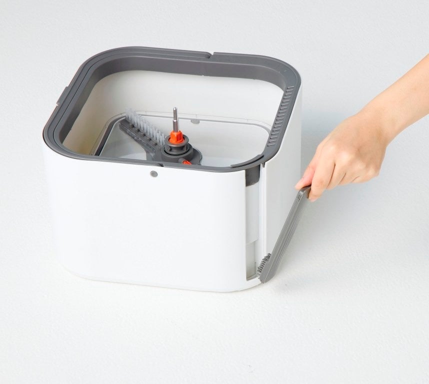 洗浄タンクと汚水タンクが分かれているので、モップを洗うたびに常に清潔な水でお掃除できます。電気は不要。上下に動かすだけでモップが洗浄でき、思い立ったらすぐ使える手軽さも魅力です。