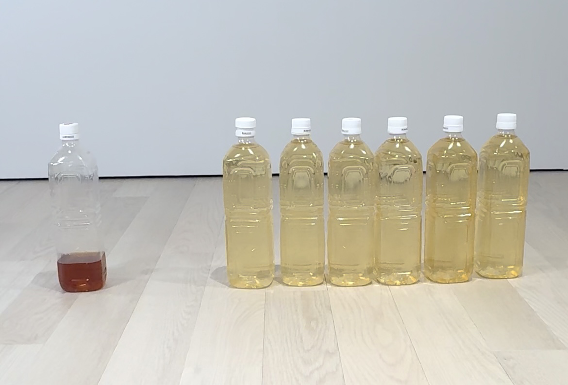 同一条件で汚染されたモップで検証した結果、水量と汚水の濃度に見られるように、比較品(バケツ洗浄)は、モップ全体を浸すため、多くの水6000ml(2Lのペットボトル6本)が消費されるのに対し、くるモピは、少量の水220mlで効率よく洗浄でき、節水に繋がった。