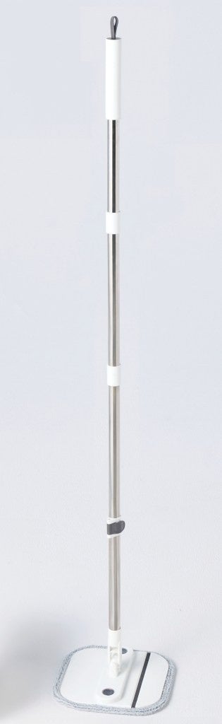 モップパッドはマイクロファイバー素材で、細かなゴミやホコリをしっかりキャッチ。取り外して丸洗いでき、いつでも清潔に使えます。モップ本体は112~134㎝まで伸縮可能で、分解してコンパクトに収納できる設計、フック穴付きなので、使わないときは吊るして保管することもできます。