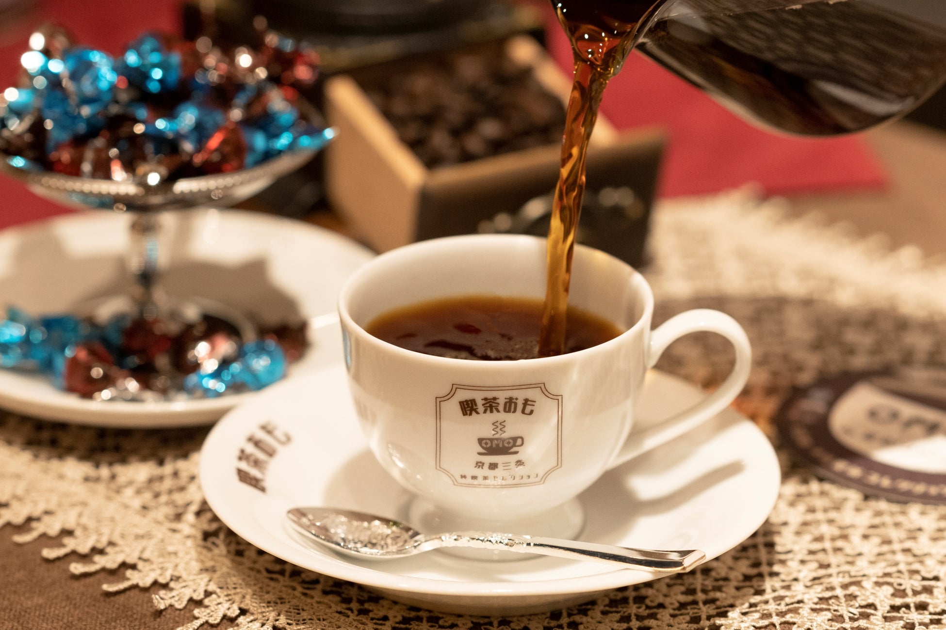 コーヒーの消費量が日本全国上位の京都(*2)。「OMO5京都三条」の近くの三条エリアには、90年以上の歴史ある純喫茶が今もなお多く軒を連ねており、地元の人に愛されています。館内イベント「京町純喫茶セレクション」では、OMOレンジャーが紹介する京都の純喫茶文化の歴史と共に、周辺のおすすめ純喫茶の特徴や雰囲気を知ることができ、次の日に行きたい純喫茶に出会うことができます。会話のお供には、徒歩3分のご近所「スマート珈琲店」のコーヒー豆を用いたドリップコーヒーを用意。ご主人直伝の抽出法で、OMO レンジャーが目の前で淹れます。