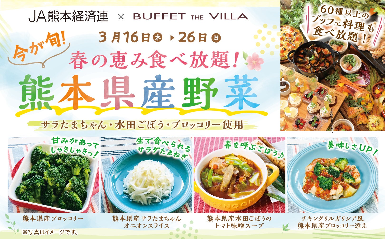 【今が旬!熊本県産野菜が食べ放題!】二子玉川の隠れ家的ブッフェ『ブッフェ ザ ヴィラ』にて“美味しい”春の訪れを堪能しませんか?今が旬の『熊本県産』野菜が食べ放題にて登場いたします!
