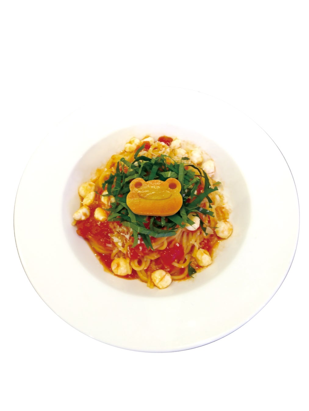 ●モッツアレラチーズと大葉のトマトソースパスタ 1,400円 セットドリンク付 2,130円(ピエールの缶バッジ付)