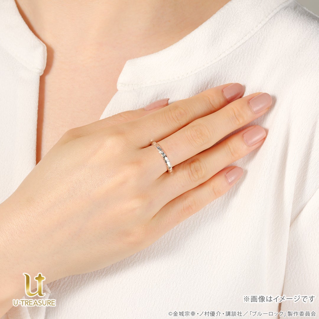 「世界一のエゴイストでなければ、世界一のストライカーにはなれない。」“ブルーロック(青い監獄)”プロジェクトに集められた才能の原石たちをイメージしたリング。槌目模様の中でただ一つ突出した五角形が、唯一無二のエゴイストを表現しています。リングの内側に「潔 世一」「蜂楽 廻」「國神 錬介」の3人から好きなキャラクターの名前を刻印でき、魅力あふれる彼らをいつもそばに感じられます。シンプルでさりげなく世界観を取り入れたリングなので、素材違いで重ね着けをしても素敵です。