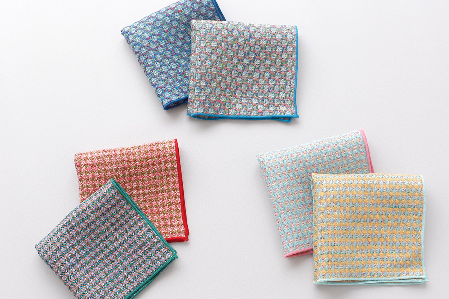 期間中、化学肥料の使用が少ない「ヘンプ」素材や、カリブ海の限られた島でしか産出しない「海島綿(かいとうめん)」を使ったコンパクトなサイズのハンカチを展開。この他、発売以来人気の、様々な動物がハンカチの縁を引っ張る刺繍がユニークな「HIKKOMI 」シリーズなどを販売します。