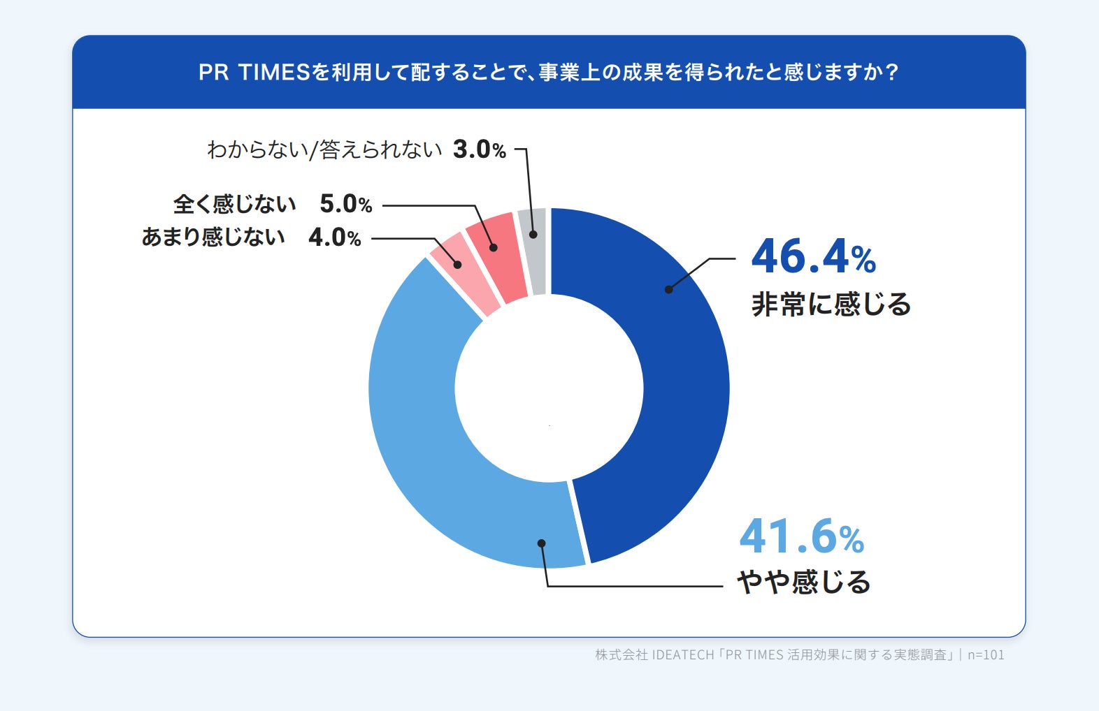 月に1回以上プレスリリースを配信している企業の経営層のうち、実に88.0%が何らかの「事業上の成果」を実感していると回答しています。