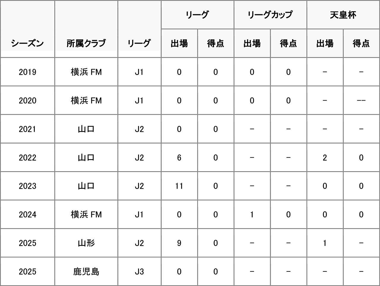 JFC FUTURO – 横浜F・マリノスジュニアユース – 横浜F・マリノスユース – 横浜F・マリノス – レノファ山口FC – 横浜F・マリノス – モンテディオ山形 – 鹿児島ユナイテッドFC