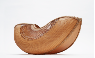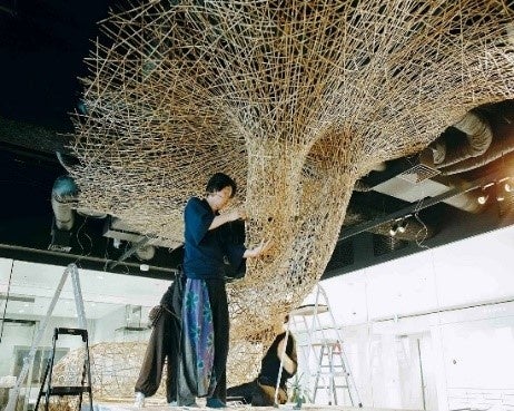 さらには年々進化するインスタレーションや、竹を編み込む緻密な技術によって生み出される造形オブジェ、数理モデルを応用した作品など、新しい工芸の魅力を感じさせます。また、全国から門弟が集まり、伝統と革新を生み出すハイブリッドな工房として、大型作品の共同制作や地域振興の領域まで、持続可能な未来を見通した活動をされています。