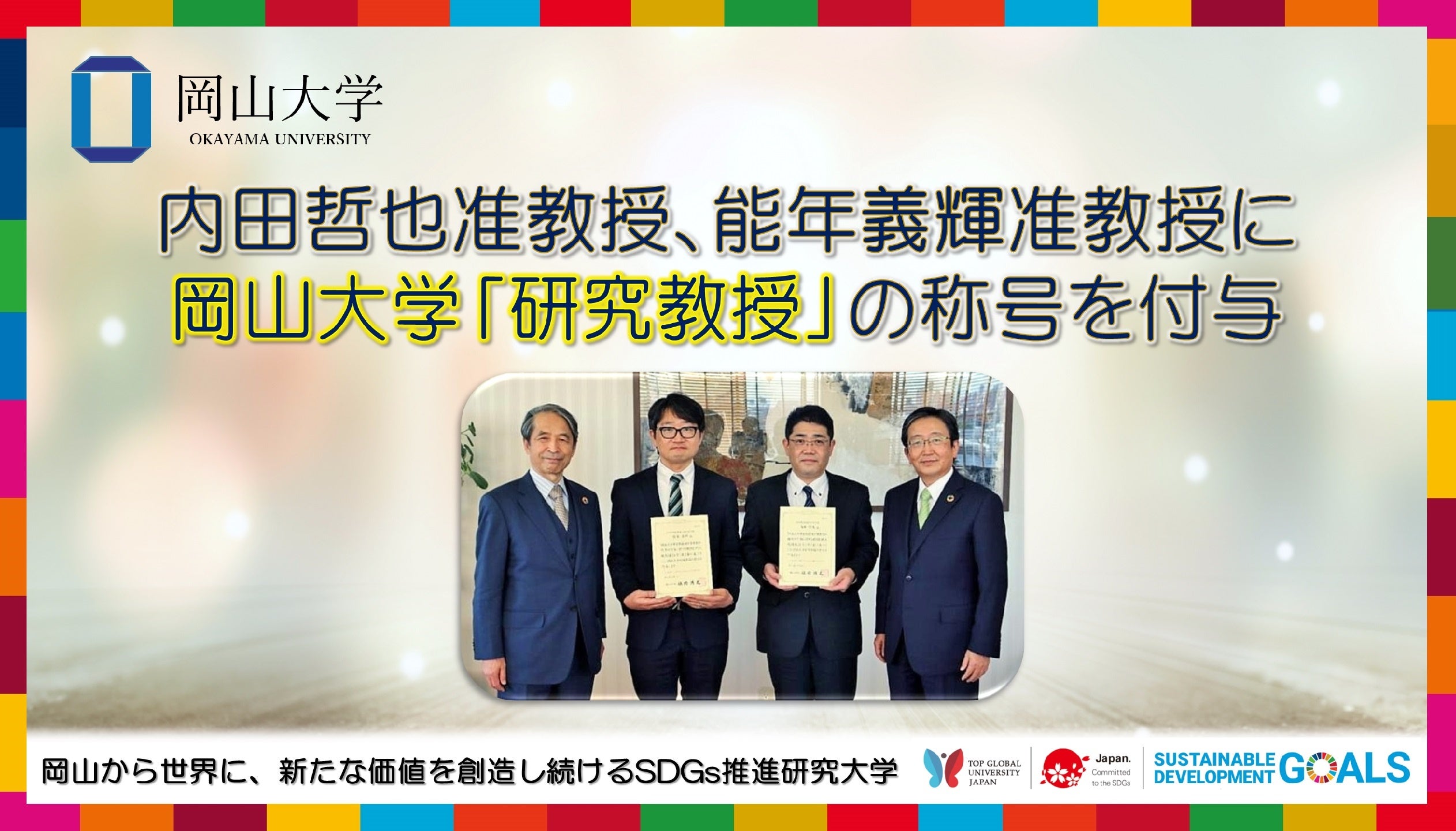 【岡山大学】内田哲也准教授、能年義輝准教授に岡山大学「研究教授」の称号を付与しました