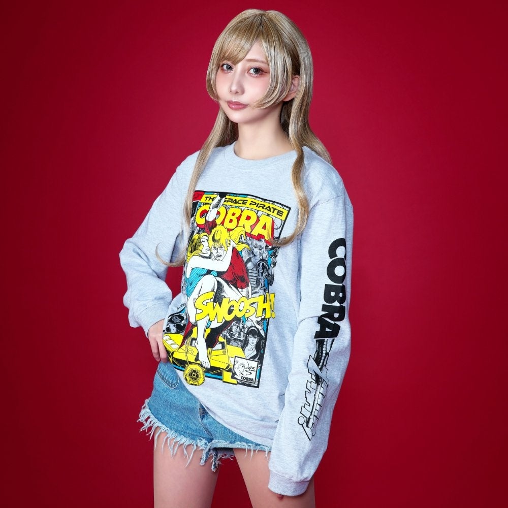 コブラシリーズを彩る様々な名シーンをコラージュし、アメコミの表紙風にデザインした逸品。左腕にプリントされた憧れのサイコガンも君のモノ!