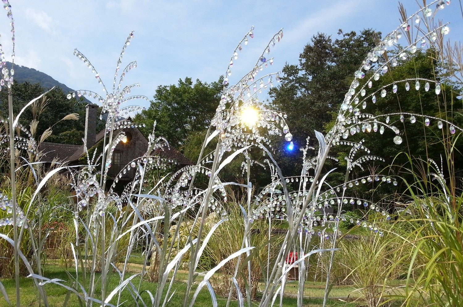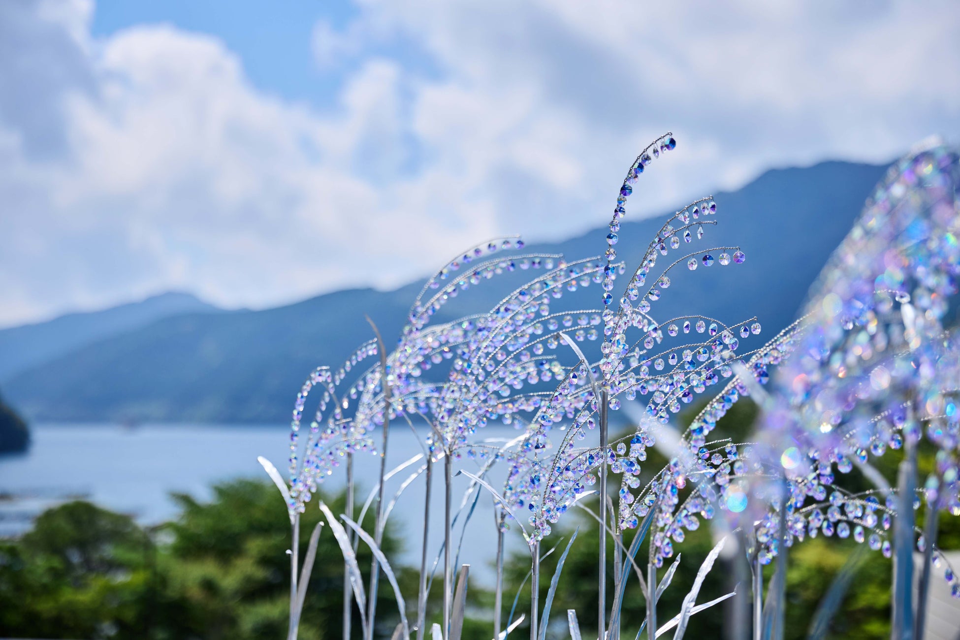 緑豊かな箱根仙石原に、1996年に開館したヴェネチアン・グラス専門美術館。美術館内では15世紀から現代までのヴェネチアン・グラスやガラスアート作品を展示しているほか、庭園では四季折々の花々とクリスタル・ガラスの競演が楽しめます。箱根、仙石原の秋の風物詩である“ススキ”をモチーフにしたオブジェ、クリスタル・ガラスのススキは草丈約1.5メートル。その花穂には約100粒のクリスタル・ガラスが咲き誇り株数300本合計30,000 粒のクリスタルの華が秋空の下で七色に輝きます。 施設内にはミュージアムショップ館やガラス制作の体験工房、国内外で活躍するアーティストによる生演奏が行われるカフェレストランも併設されており、ガラスアートの余韻に浸りながら、優雅なひと時を過ごしていただけます。