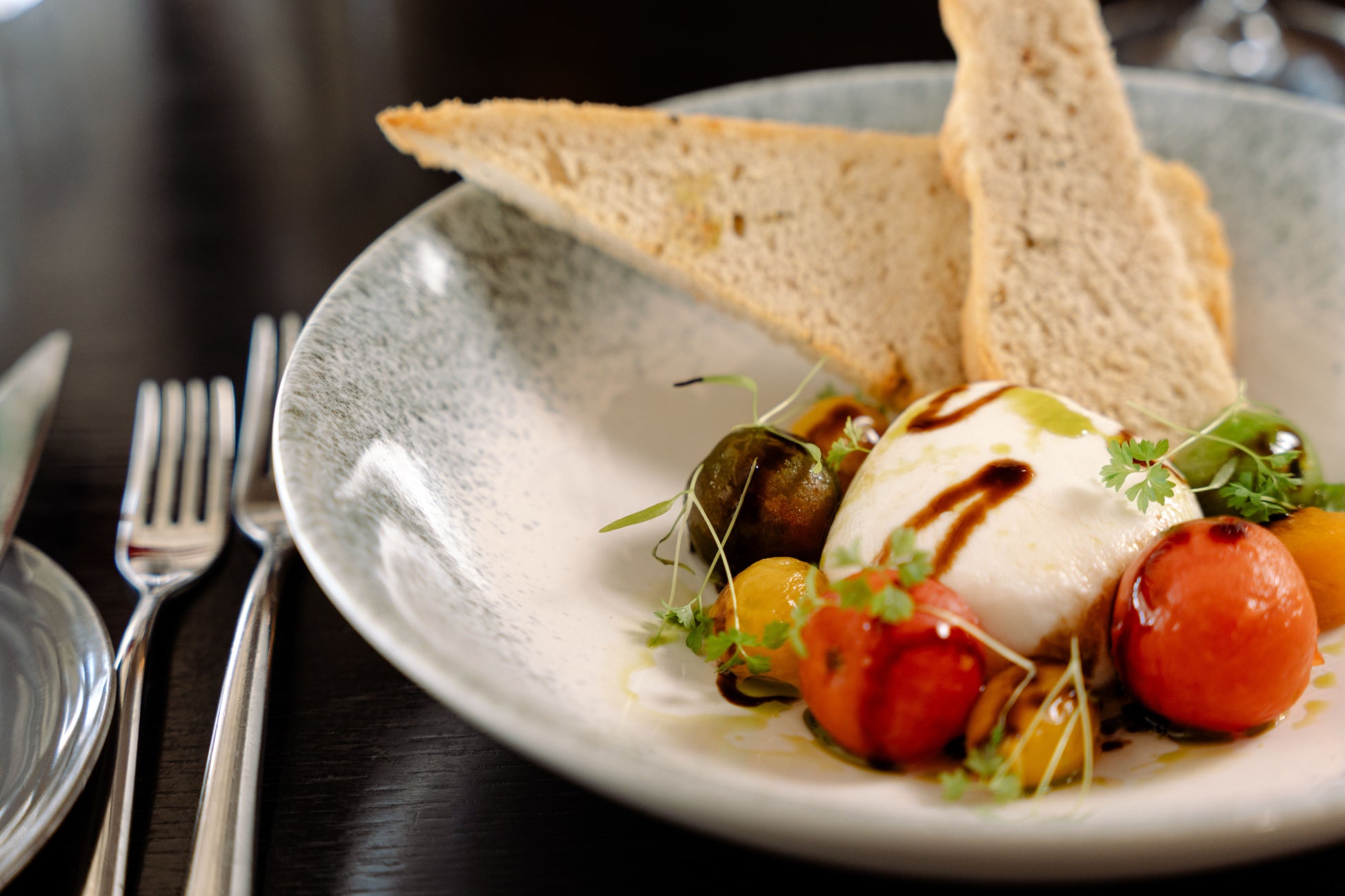 「季節のコース」(1名様 90 AUD~)に含まれる、シェフおすすめのひと皿「トマト、自家製フォカッチャ、バジルと熟成バルサミコ添え」では、地元産のブッラータの濃厚な味わいとクリーミーな中心部が、自家栽培のヘアルームトマトの鮮やかさを完璧に引き立てます。自家製パン、フレッシュなバジルオイル、熟成バルサミコとの組み合わせは、地元の最高級食材を讃える一品。一口ごとに伝統と職人技の両方を称える、この地域の味への真のオマージュを味わえます。ほか、ホテル敷地内には、野菜畑や蜂の巣箱もあり、採れたての新鮮な食材を使用したヘルシーな料理の数々を楽しむことができます。