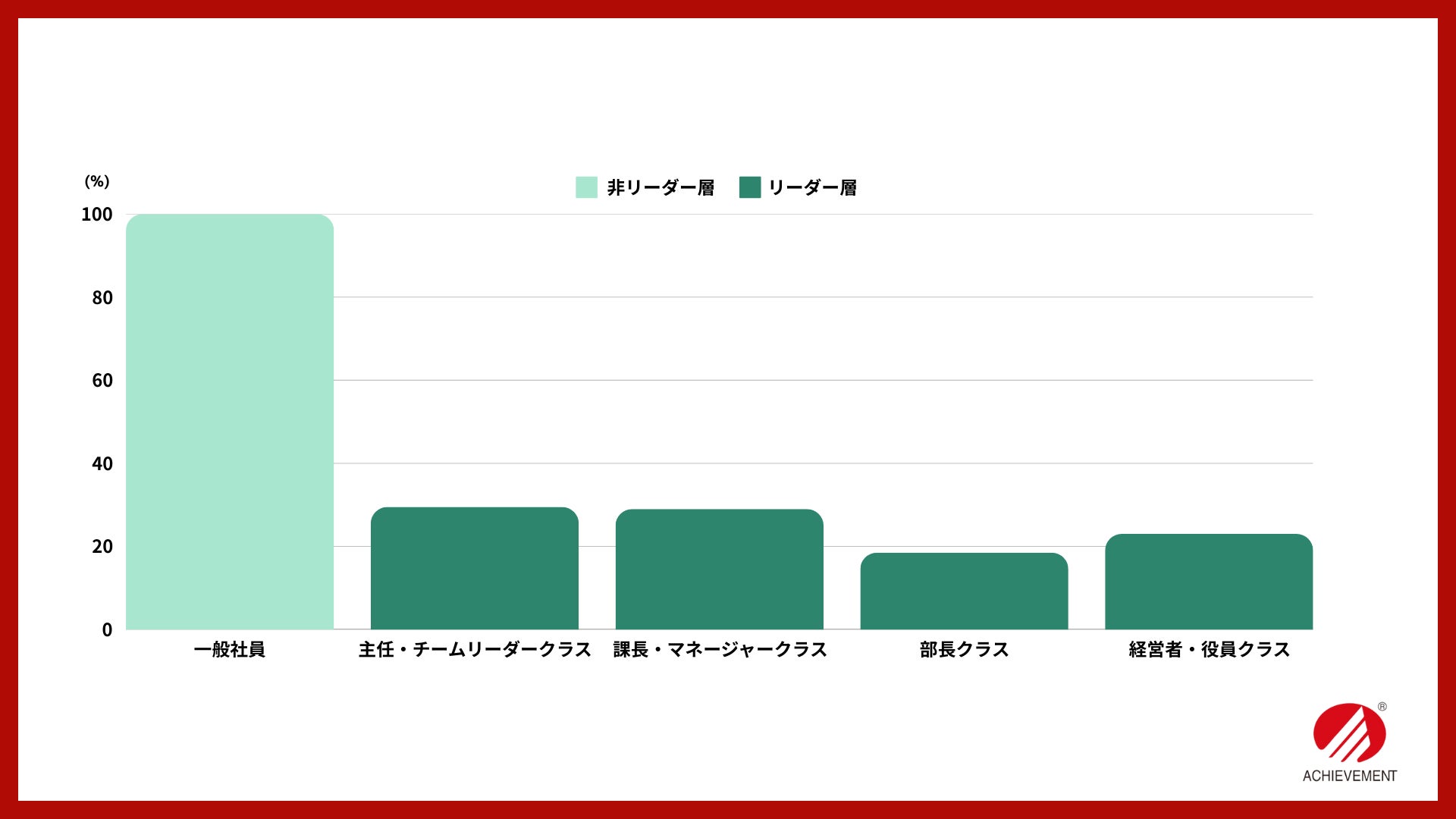 近年、企業において管理職になることを敬遠する「管理職離れ」の傾向が指摘されています。しかし本調査では、リーダー層は全ての評価項目において非リーダー層を上回る結果であることが明らかになりました。