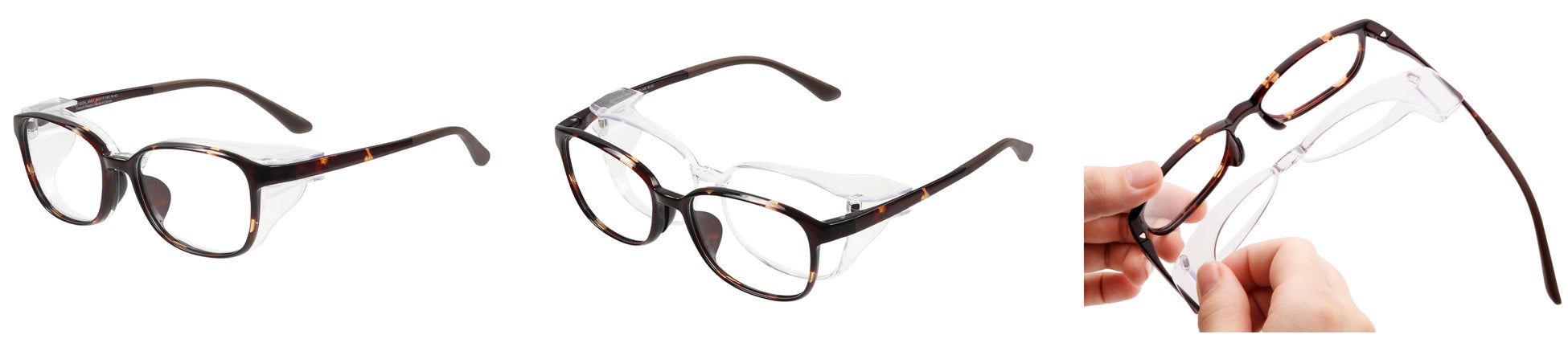 <フードが着脱できて普通のメガネにもなる2WAYタイプの目元への飛沫・花粉対策メガネ>