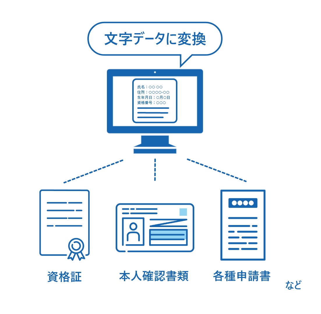 採用時に資格の登録が必要な場合、登録番号等を控える必要があります。手入力だと間違えてしまいやすいデータですが、AI-OCRが自動で読み取りデータ化するため、入力ミスの削減に大きく貢献します。