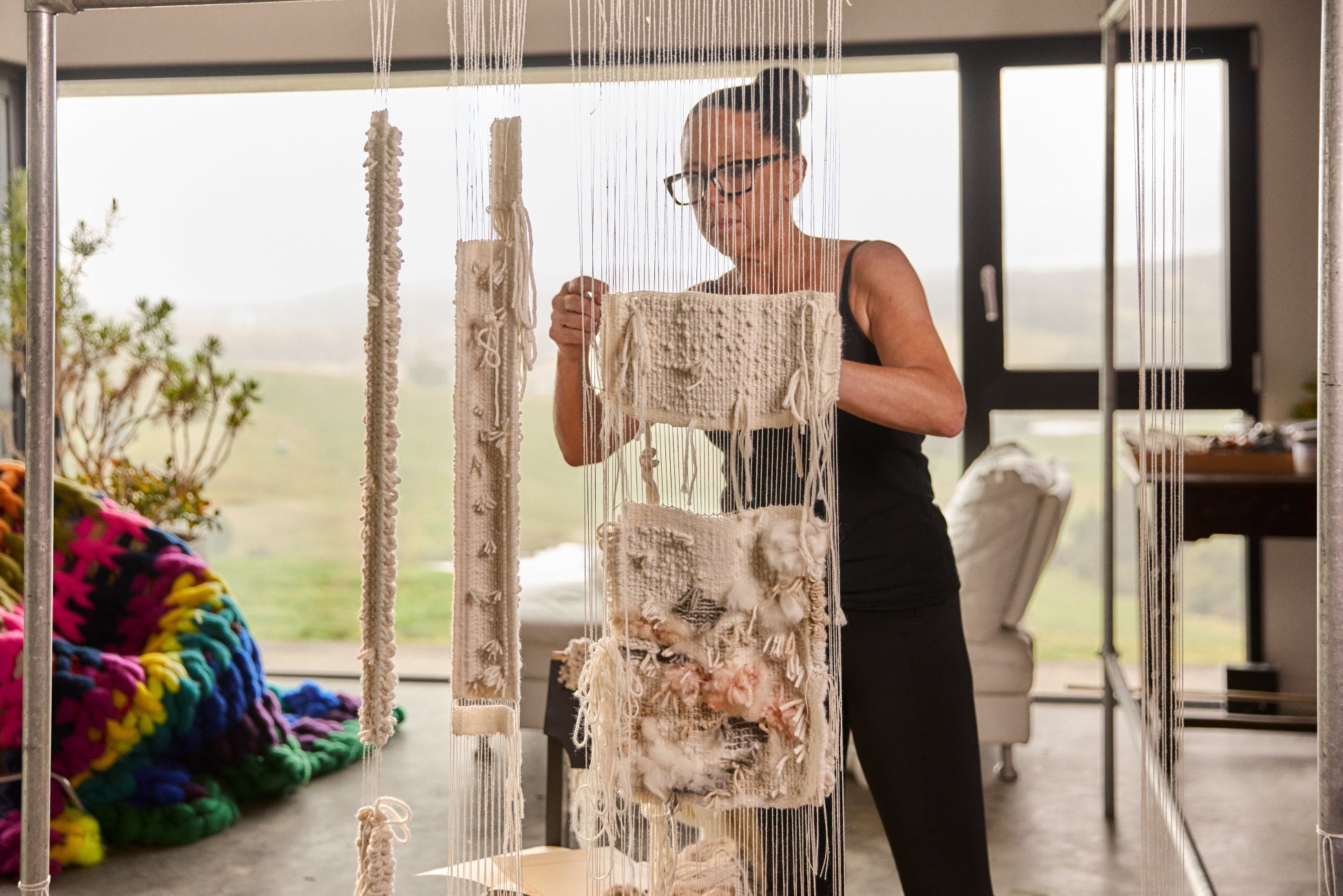 ナタリー・ミラーはオーストラリアのサザンハイランズ、イーストカンガルーンを拠点に活動する世界的に知られたテキスタイルアーティストであり建築家です。ミラーの母親はドレスメーカー、父親は工具製作者であり建築者でした。彼女の家系が持つ才能を手工芸に生かし、ミラーは手染めのオーストラリアウールを用いて巨大でカラフルなタペストリーを制作します。壮大なサザンハイランズの丘陵を背景に建つ彼女のスタジオは、写真のように美しい野原から色彩豊かな空まで、無限のインスピレーションの源です。彼女のオーストラリアのヘリテージを守るためミラーは可能な限り自然のリソースと地元で生産された手染めのメリノウールを利用して、作品を生み出します。これまでの人生経験を生かし、ミラーは小さなブティックのテキスタイルやデザイン、オーストラリアやアジア、パリ、アメリカで行われるクリエイティブなリトリートにおいて、彼女が持つ知識を惜しみなく提供します。それらのリトリートにおいて、彼女は参加者に織物やマクラメについて教え、新しいクリエイティビティに対して心を開かせます。ミラーにとってよろこびは旅路にあり、そして彼女は工芸に対する愛を他者と共有するというミッションを果たしています。