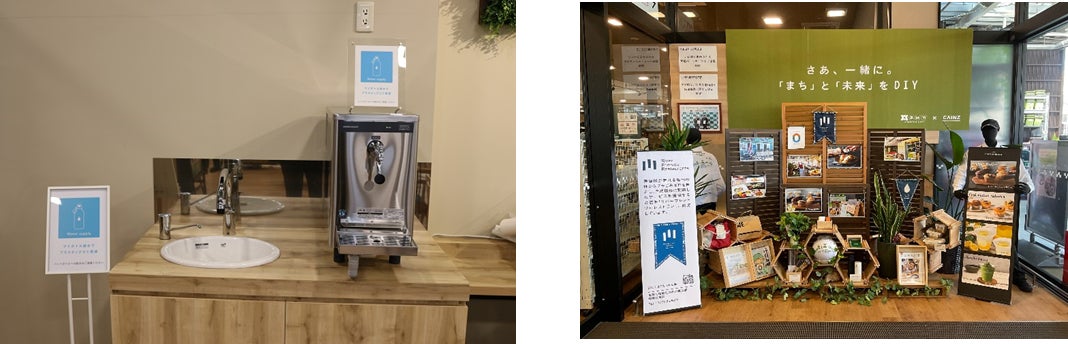 マイバッグの推進やラベルレス商品の販売、マイボトル給水スポットの設置による脱プラスチック推進のほか、店舗屋根への太陽光パネルの設置によるカーボンゼロ推進など、地域の皆様とともに環境先進都市・亀岡の未来を創造します。また、カインズと亀岡市が共創する環境活動内容を展示するコーナーを店頭に設けています。