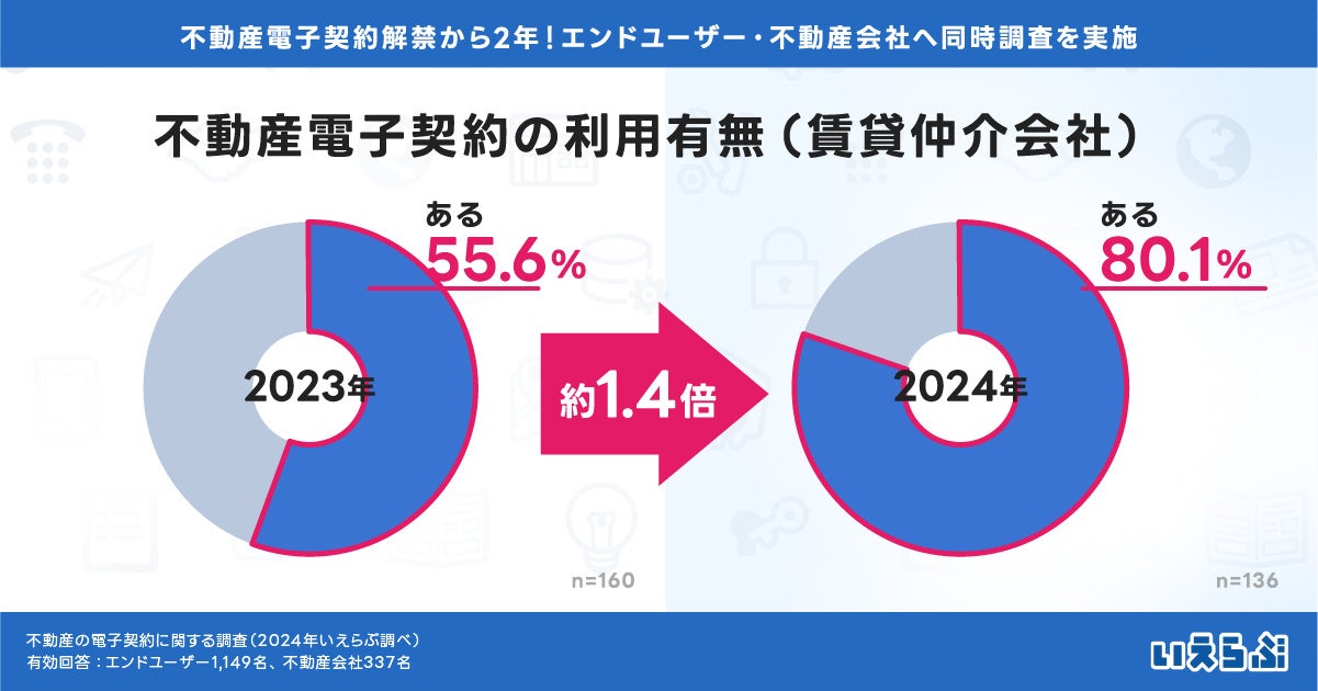 【5月18日は不動産電子契約の日】不動産業界のDXに取り組む株式会社いえらぶGROUP(本社:東京都新宿区、代表:岩名泰介、以下「いえらぶGROUP」)は、不動産電子契約の全面解禁から2年を迎えることを踏まえ、不動産会社およびエンドユーザー1,486名に対し実施した「不動産の電子契約に関する調査」の結果を発表します。
