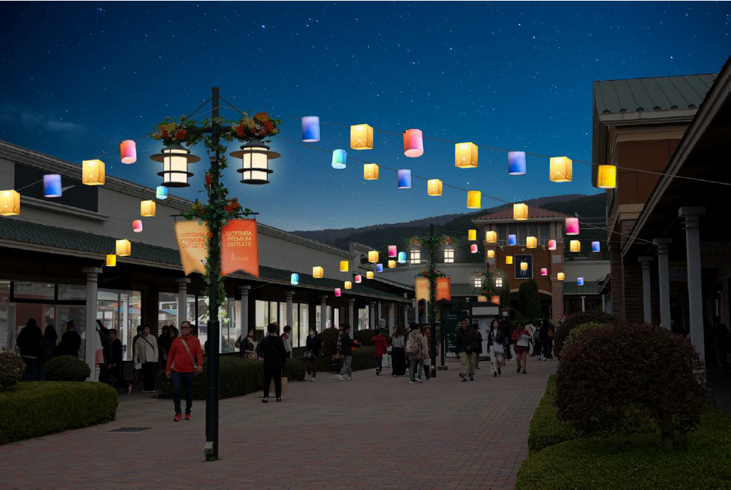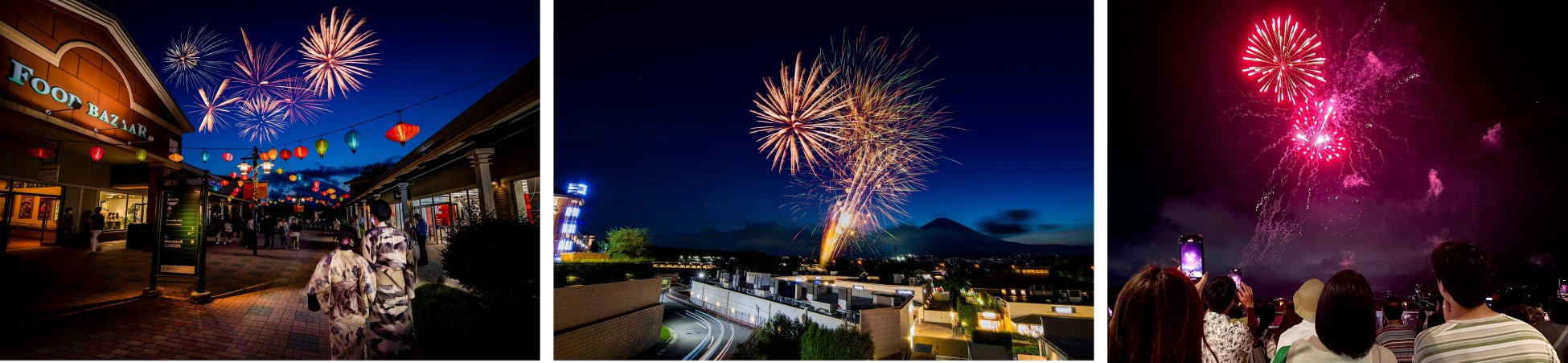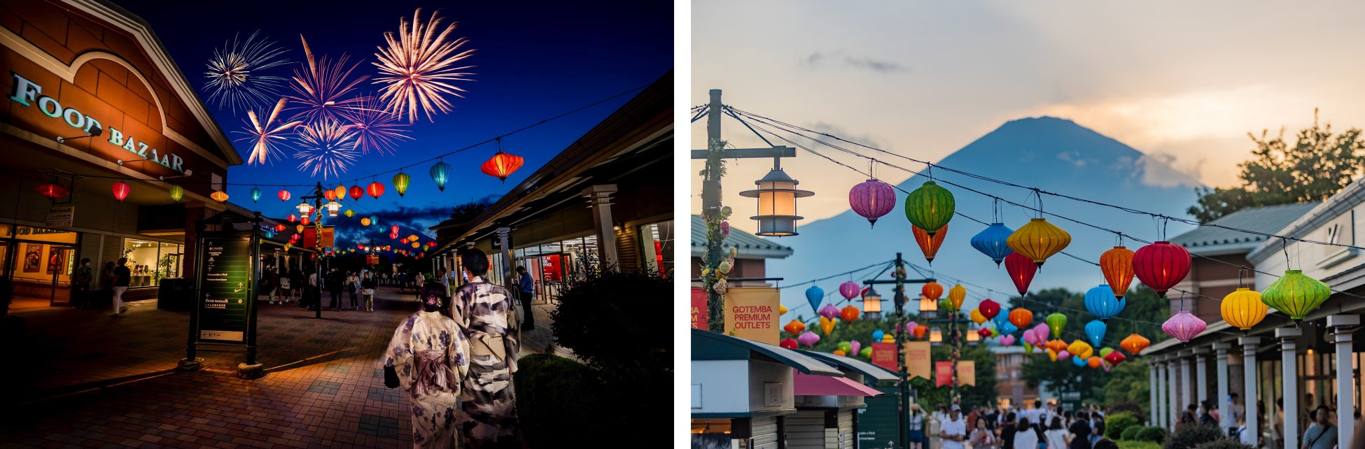 閉館後20時10分より約5分間、迫力満点の打ち上げ花火を開催!アウトレット場内の各エリアから色とりどりの鮮やかな花火を間近で観覧できます。また、富士山を望む絶景スポットに、昼夜問わずお祭り気分を盛り上げるフォトジェニックなランタン装飾も登場します。