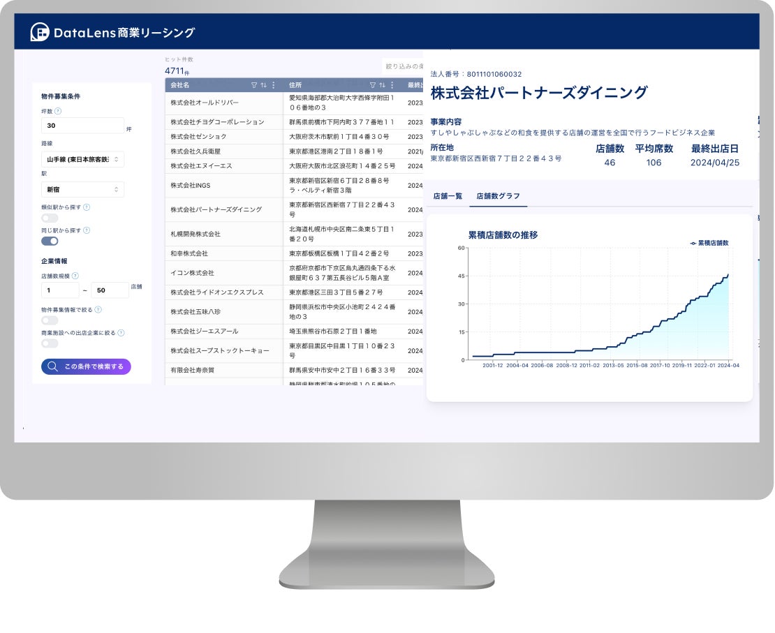 ~第一弾として、商業用不動産・店舗ビジネス向けに「DataLens商業リーシング」「DataLens商圏分析」「DataLens店舗開発」を提供~