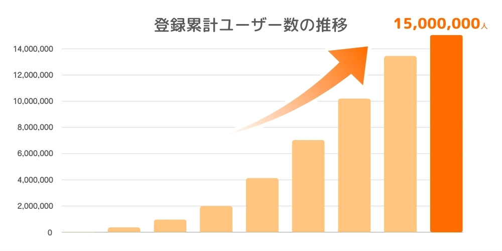 ●「ファンティア」登録ユーザー数1500万人突破の推移