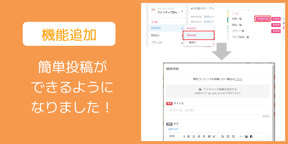 ▽簡単投稿機能 ※2024.4/4リリース